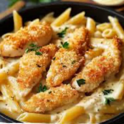 Assiette de pâtes aux amandes et à la roquette.